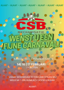 Ook wij gaan Carnaval vieren vandaar deze gewijzigde openingstijden